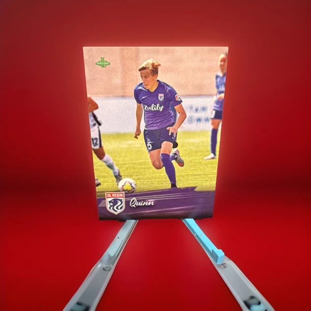 The card showcases Quinn, who plays for Reign FC in the NWSL, making it a desirable item for soccer fans and collectors looking to add a piece of the player's rookie season to their collection.
