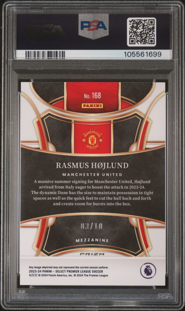 You are purchasing a Rasmus Hojlund 2023-24 Panini Select Premier League #168 Gold Mojo 3/10 PSA 10. You will receive the exact item in the photographs. Thank you for looking.