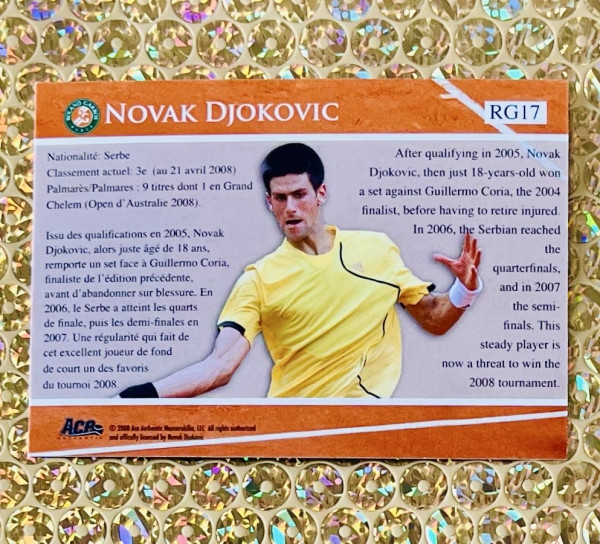2008 Ace Authentic #RG-17 Novak Djokovic Silver Foil Parallel