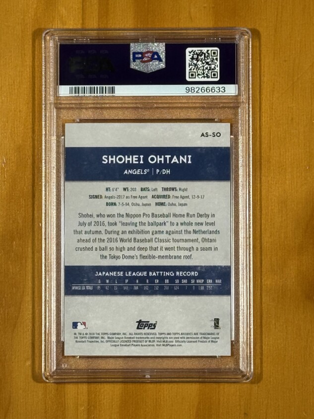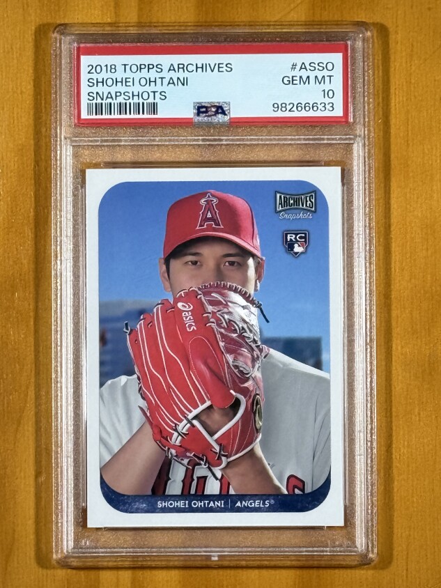 2018 Topps Archives Shohei Ohtani Snapshots Rookie Card #AS-SO PSA 10 is a must have for any Shohei Ohtani or MLB collector. MLB history in the making...