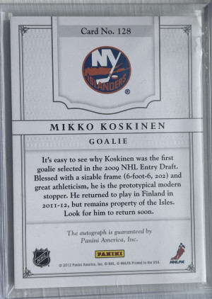 2011-12 Panini Dominion Auto Rookies /199 Mikko Koskinen #128 Rookie Auto RC