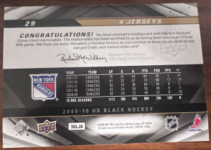 2009-10 Markus Naslund Upper Deck UD Black #29 4 Jerseys quad patch /99