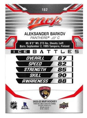 2022-23 Upper Deck MVP Ice Battles #182 Aleksander Barkov - Florida Panthers
