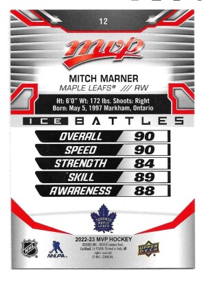 2022-23 Upper Deck MVP Ice Battles #12 Mitch Marner - Toronto Maple Leafs