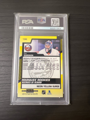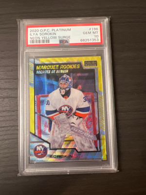 2020 O-Pee-Chee Platinum Ilya Sorokin Neon Yellow Surge Rookie