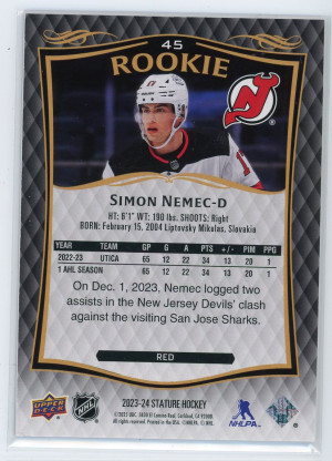 2023-24 Upper Deck Stature #45 Simon Nemec Rookie Red 82/249