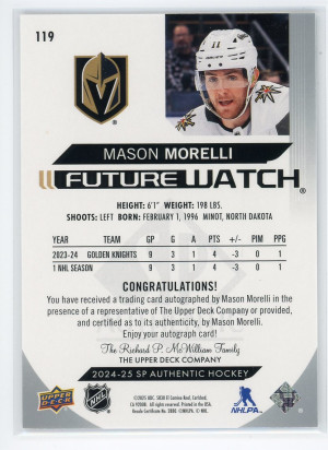 2024-25 SP Authentic Mason Morelli Future Watch Autograph Rookie /999