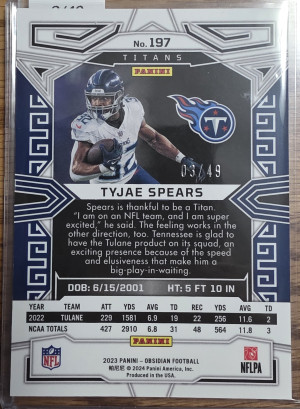 2023 Obsidian Tyjae Spears /49