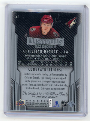 2016-17 UD Black #51 Christian Dvorak Lustrous Rookies Autograph /299