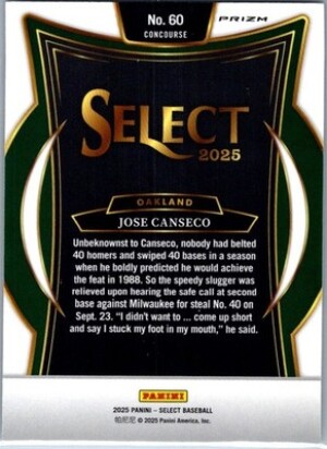 2025 Panini Select #60 Jose Canseco Silver Prizms