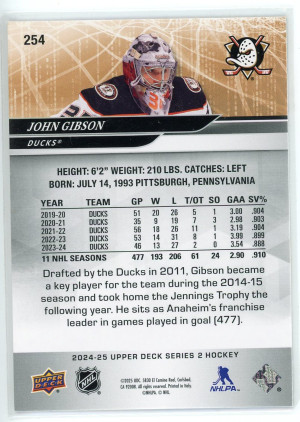 2024-25 Upper Deck #254 John Gibson Deluxe /250