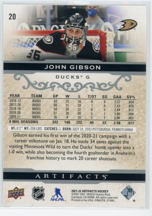 2021-22 Artifacts #20 John Gibson Silver Spectrum /299