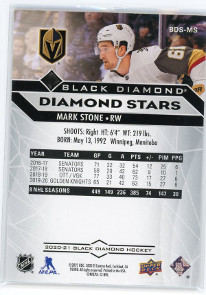 2020-21 Black Diamond #BDS-MS Mark Stone Diamond Stars 160/349