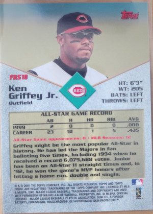 2001 Topps Gold Label Ken Griffey Jr Class 3 Gold /299