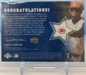 2001 Upper Deck Ken Griffey Jr Game Jersey On Card Auto Reds HOF