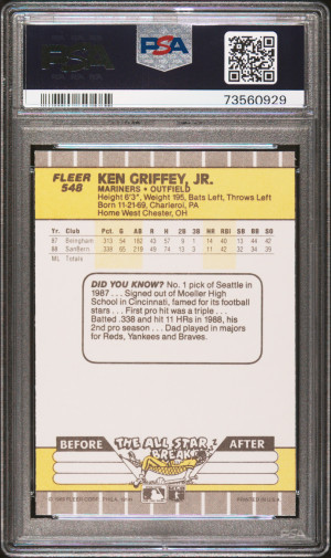 Ken Griffey Jr. RC - PSA 8 NM-MT - 1989 Fleer #548