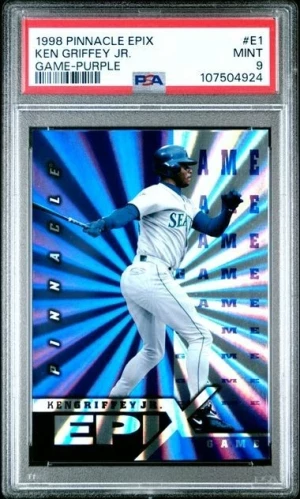 Ken Griffey Jr. 1998 Pinnacle Epix #E1 Game Purple Pop 11 PSA 9