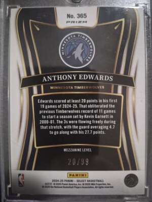 2024-25 Panini Select Anthony Edwards Mezzanine Blue Flash 20/99