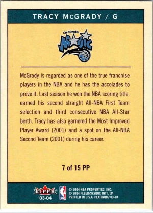 2003-04 Fleer Platinum #7 PP Tracy McGrady Platinum Portraits