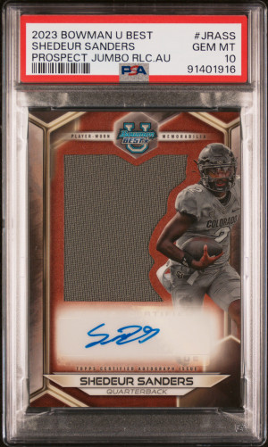 2023 Bowman University Best Prospect Jumbo Relic Autographs Shedeur Sanders Prospect Jumbo Rlc.au