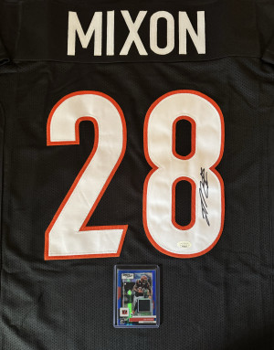 Joe Mixon Autographed Jersey With A 2022 Panini Donruss Optic Donruss Threads DT-JM Joe Mixon Card