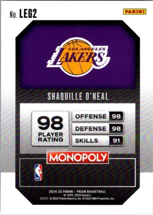 2024-25 Panini Prizm Monopoly #LEG2 Shaquille O'Neal Legends
