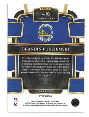 2023-24 Select Prizms Blue #93 Brandin Podziemski (RC) - Golden State Warriors