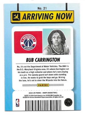 2024-25 Hoops Arriving Now #21 Bub Carrington (RC) - Washington Wizards