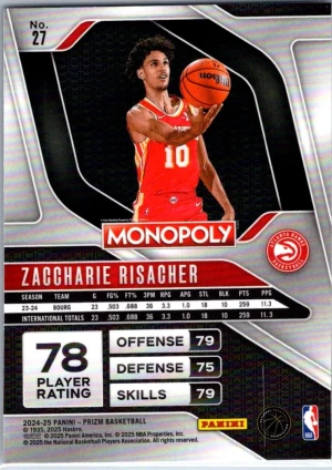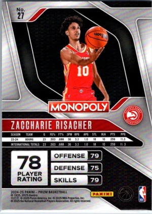 2024-25 Panini Prizm Monopoly #27 Zaccharie Risacher