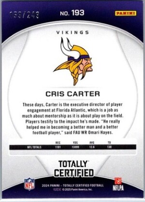 2024 Panini Totally Certified #193 Cris Carter Mirror Red #/249
