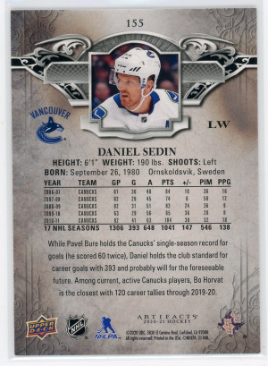 2020-21 Artifacts Copper #155 Daniel Sedin /299