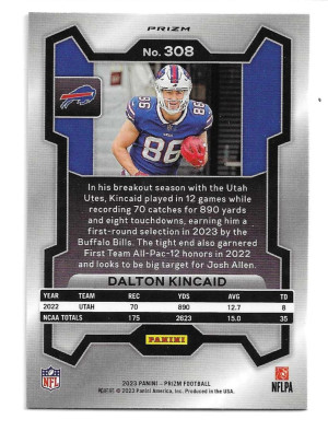 2023 Panini Prizm Prizms Silver #308 Dalton Kincaid (RC) - Buffalo Sabres