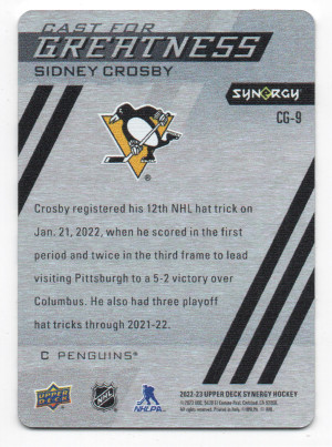 2022-23 Upper Deck Synergy Cast for Greatness ePack Green Achievements Parallel #CG-9 Sidney Crosby /50