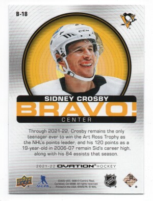 Sidney Crosby - 2021 Upper Deck Ovation Bravo! #B-18