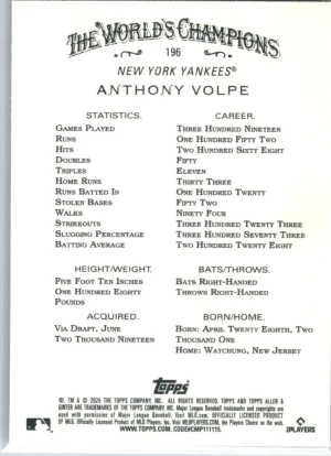 2025 Topps Allen & Ginter #196 Anthony Volpe