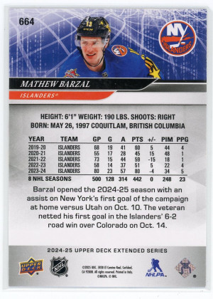 2024-25 Upper Deck #664 Mathew Barzal Exclusives /100
