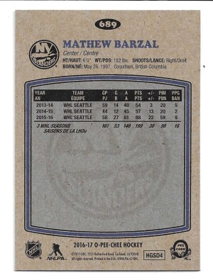 2016-17 O-Pee-Chee Retro #689 Mathew Barzal (RC) - New York Islanders
