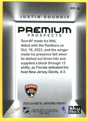 Justin Sourdif #PP-19 2023 SkyBox Metal Universe Premium Prospects