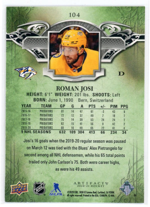 2020-21 Artifacts #104 Roman Josi /499