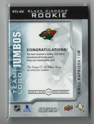 20/21 BLACK DIAMOND ROOKIE TEAM LOGO JUMBOS #RTL-KK KIRILL KAPRIZOV RC