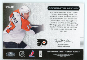 2009-10 O-Pee-Chee Premier Remnants Autographs Jeff Carter /25
