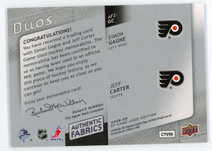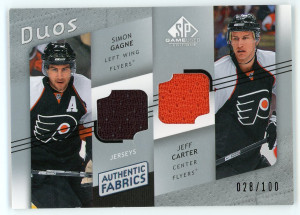 2008-09 SP Game Used Simon Gagne Jeff Carter Authentic Fabrics Duos /100 #AF2-GC