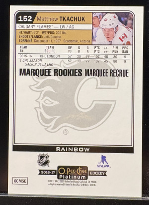 Matthew Tkachuk, 2016-17 O-Pee-Chee Platinum, Marquee Rookie, Rainbow