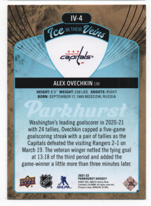 2021-22 Upper Deck Parkhurst Ice in Their Veins ePack Gold Parallel #IV-4 Alex Ovechkin