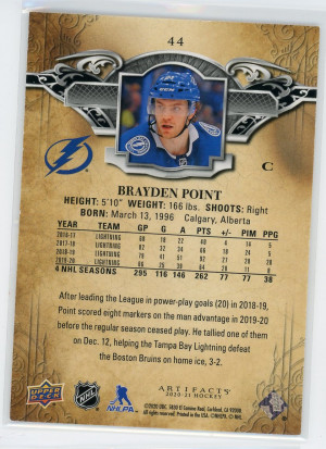 2020-21 Artifacts Copper #44 Brayden Point /299