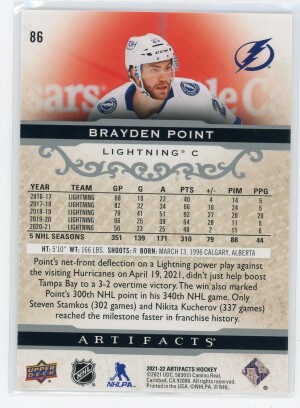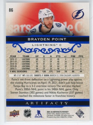 2021-22 Artifacts #86 Brayden Point Royal Blue /199