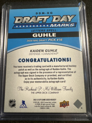 Kaiden Guhle Draft Day Marks “G” /35