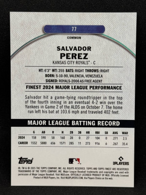 Salvador Perez 2025 Topps Finest #77 Pearl X-Fractor /60 - Royals