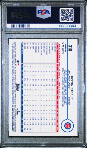 2023 Topps Chrome Gilded Collection JUSTIN STEELE Rookie RC Gold Etch Autograph AUTO #/99 - GRADED PSA 9 - Chicago Cubs