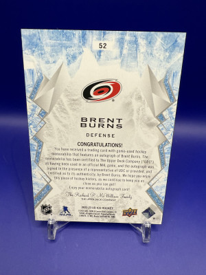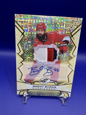 23-24 Upper Deck Ice Brent Burns Gold Patch Auto 22/49 Hurricanes 3 color patch
